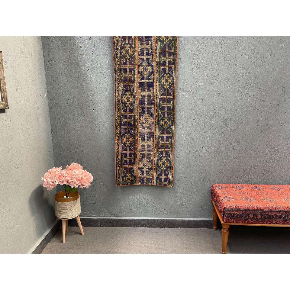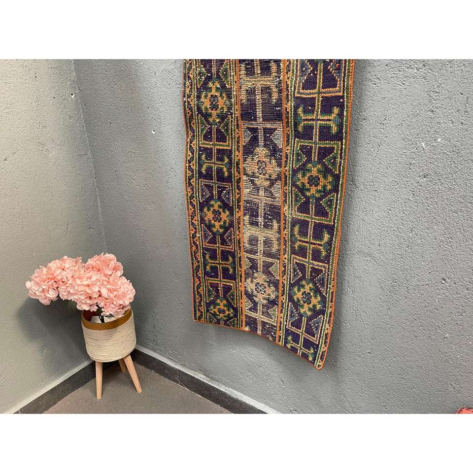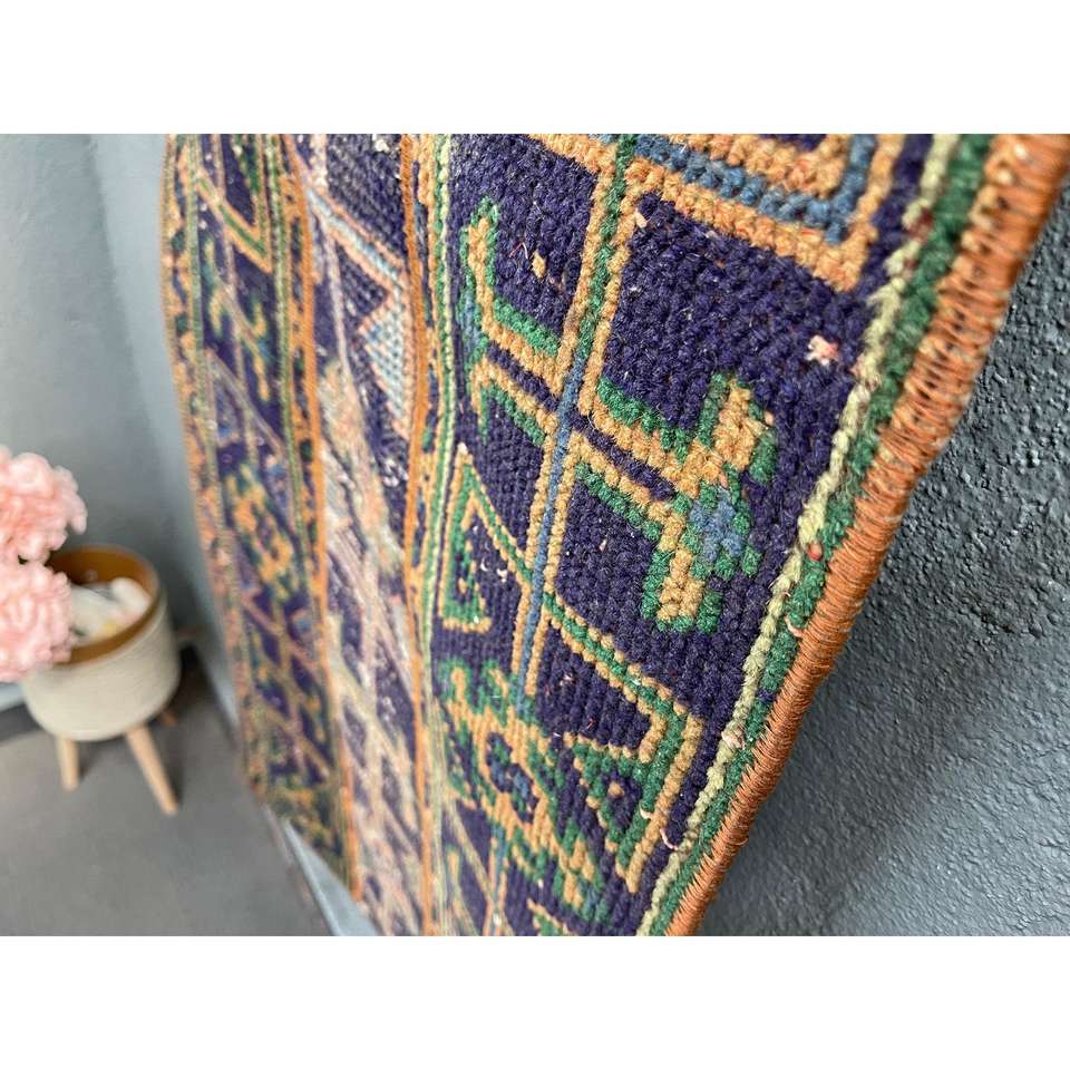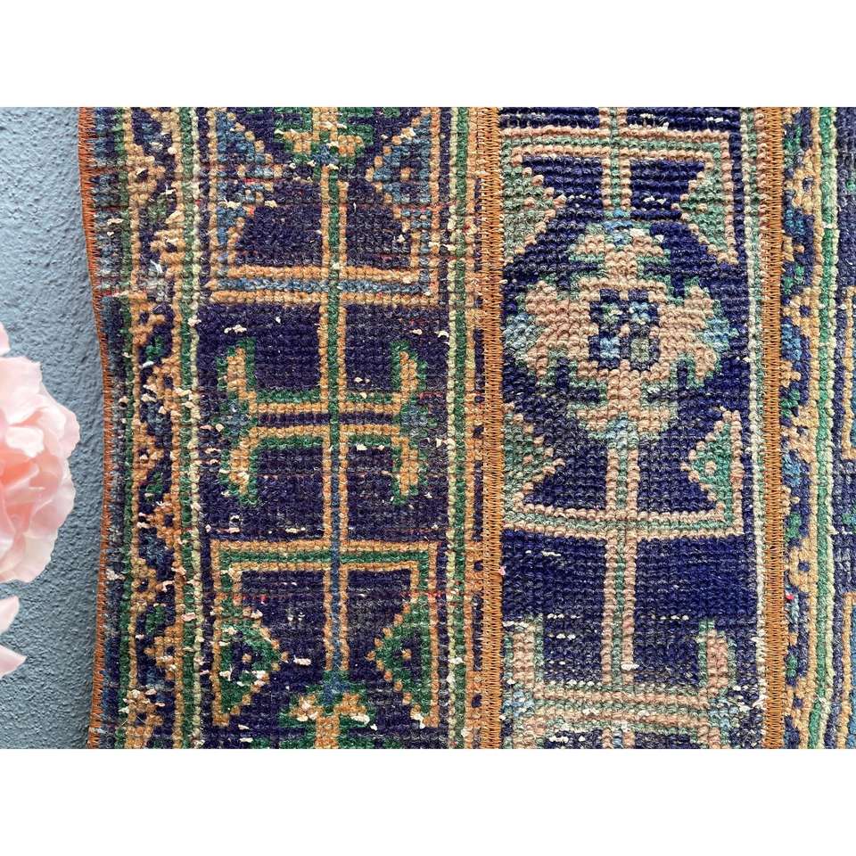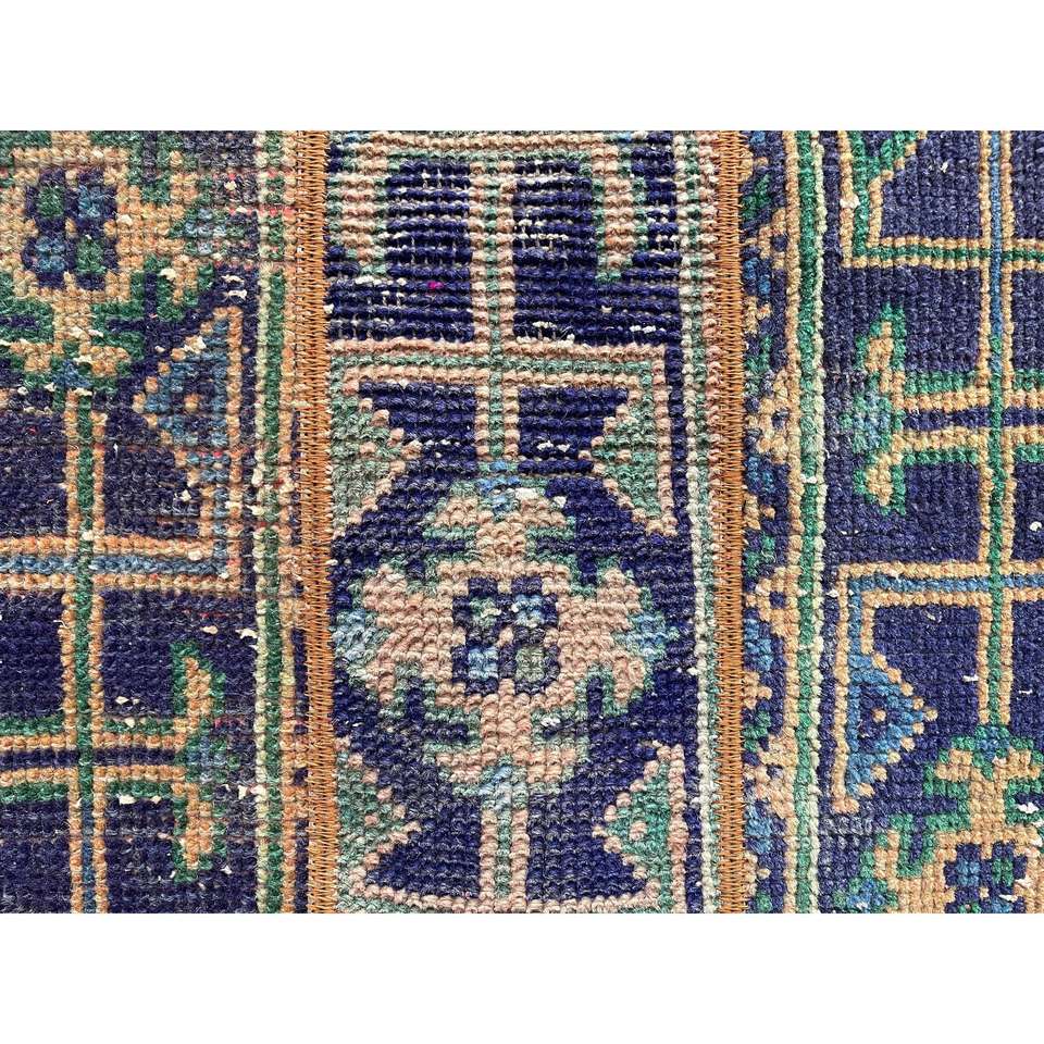Alfombra Turca de 1.8x4.8 pies, Alfombra Azul Ombré de Lana