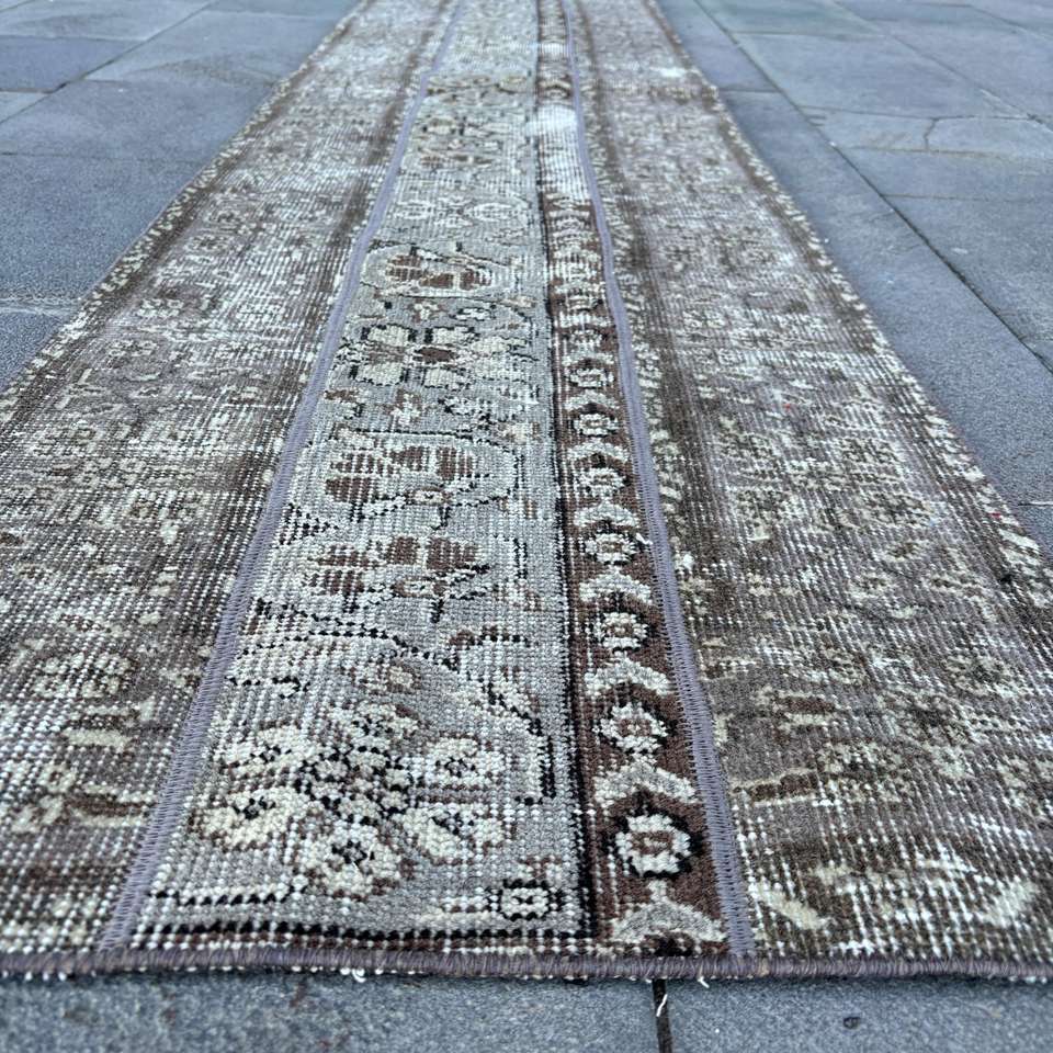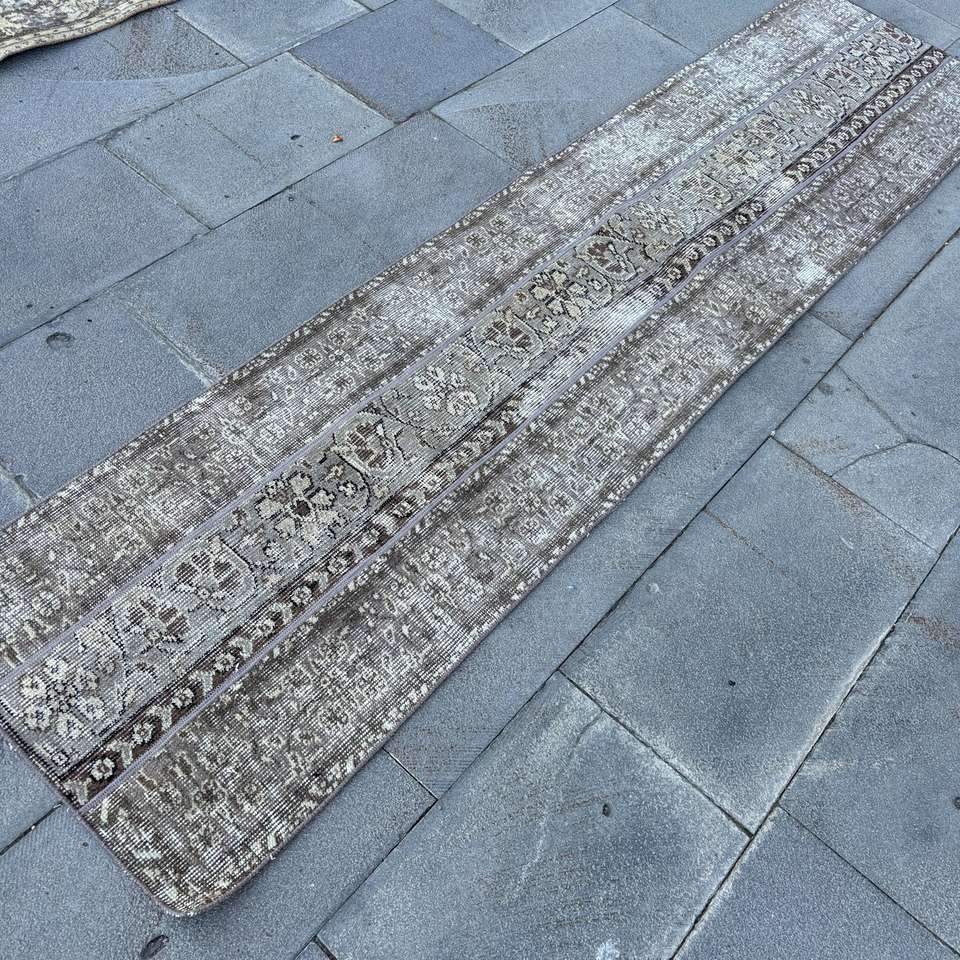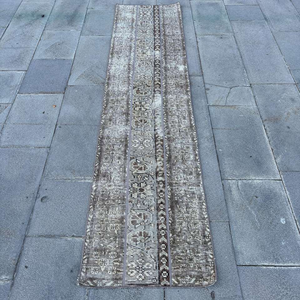 Alfombra de 1.8x7.7 pies, Alfombra Turca, Alfombra Floral Gris