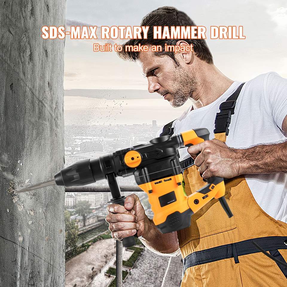Martillo Perforador SDS-Max con Cable de 1-9/16 Pulgadas, 13 Amperios, de Alta Resistencia, con Control de Vibración y Bloqueo de Seguridad, Martillos de Impacto Eléctricos
