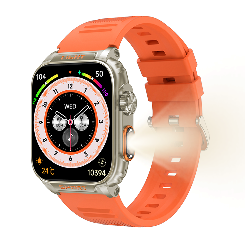 Reloj Inteligente de Moda de 1.91 Pulgadas con Linterna, Android IOS, Batería de 430 mAh, Llamadas, Asistente de Voz, IP67, Pantalla Cuadrada GP5 para Silicona