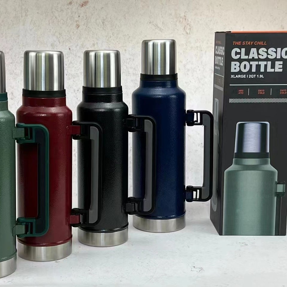 Botella de Viaje Clásica de Boca Ancha con Aislamiento al Vacío de 1.9L, 1.4L y 1L, Botella Verde de Acero Inoxidable 18/8, Taza Térmica para Mantener Bebidas Calientes