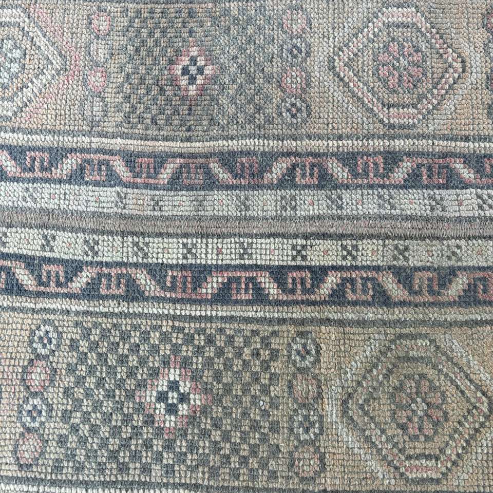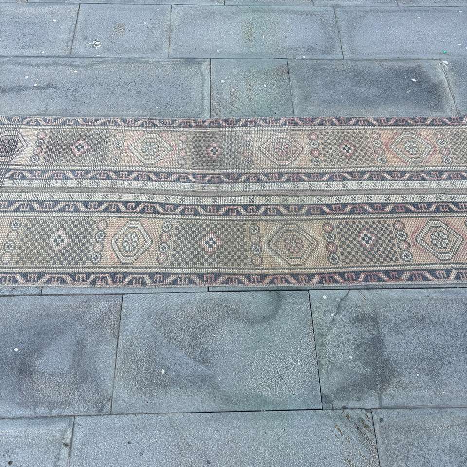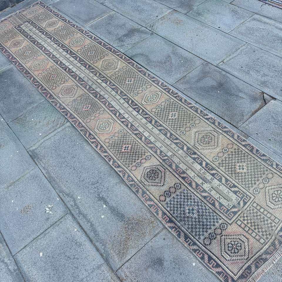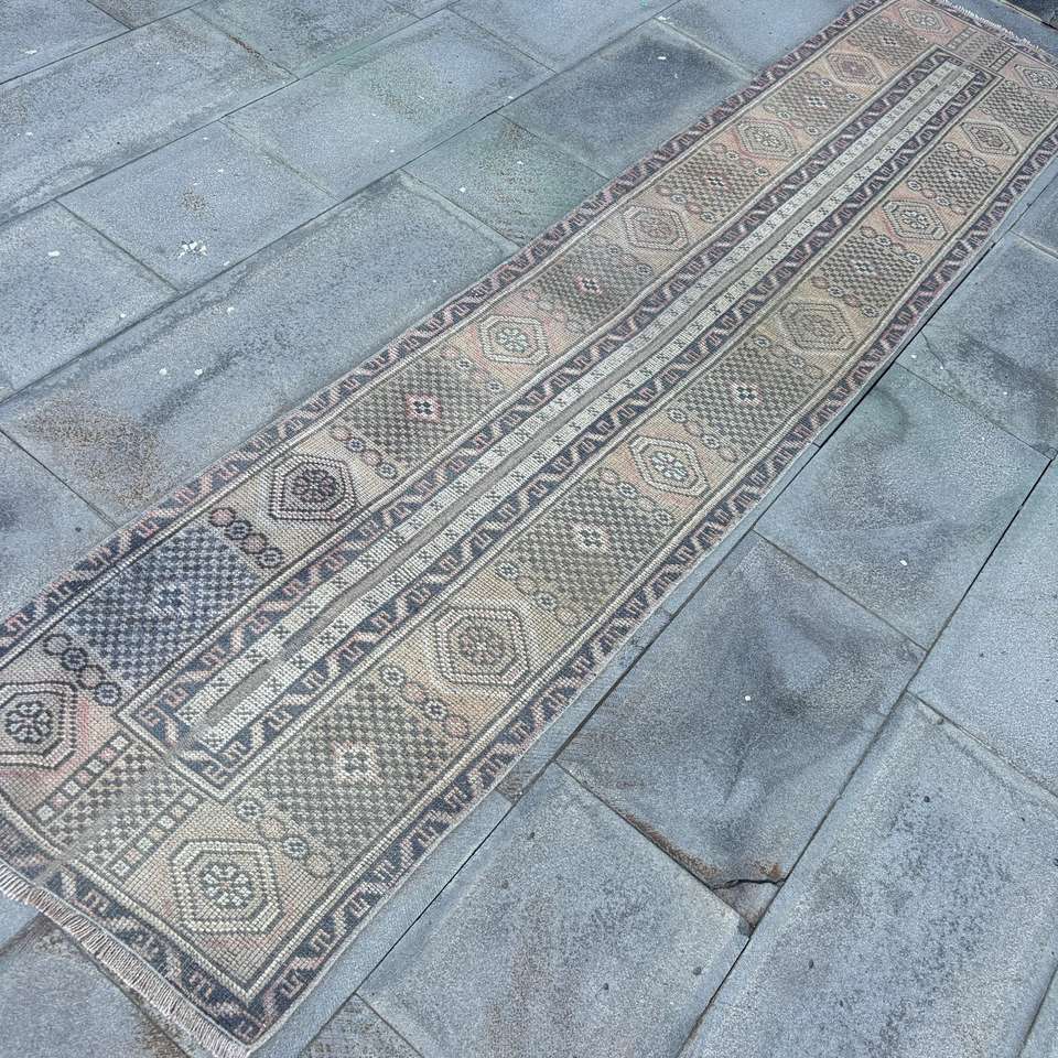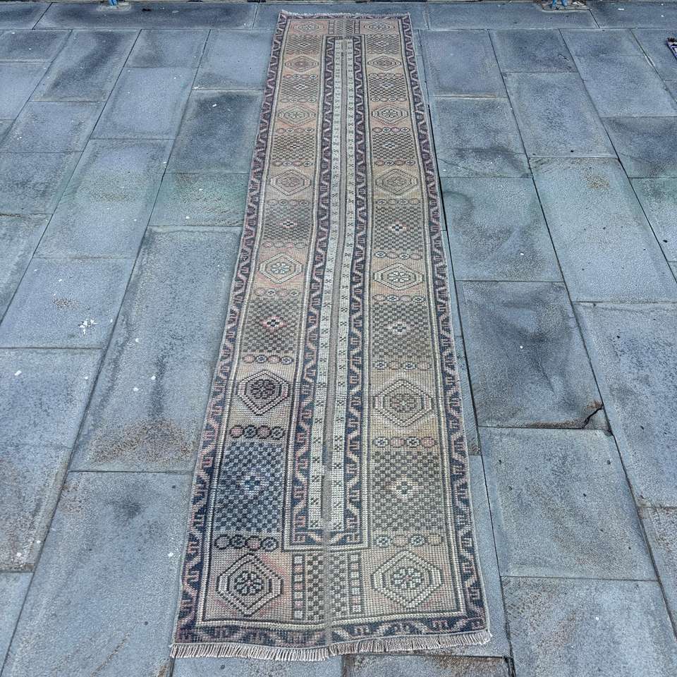 Alfombra de 1.9x8.9 pies, Alfombra Turca Vintage, Alfombra de Lana con Puntos Azules y Marrones