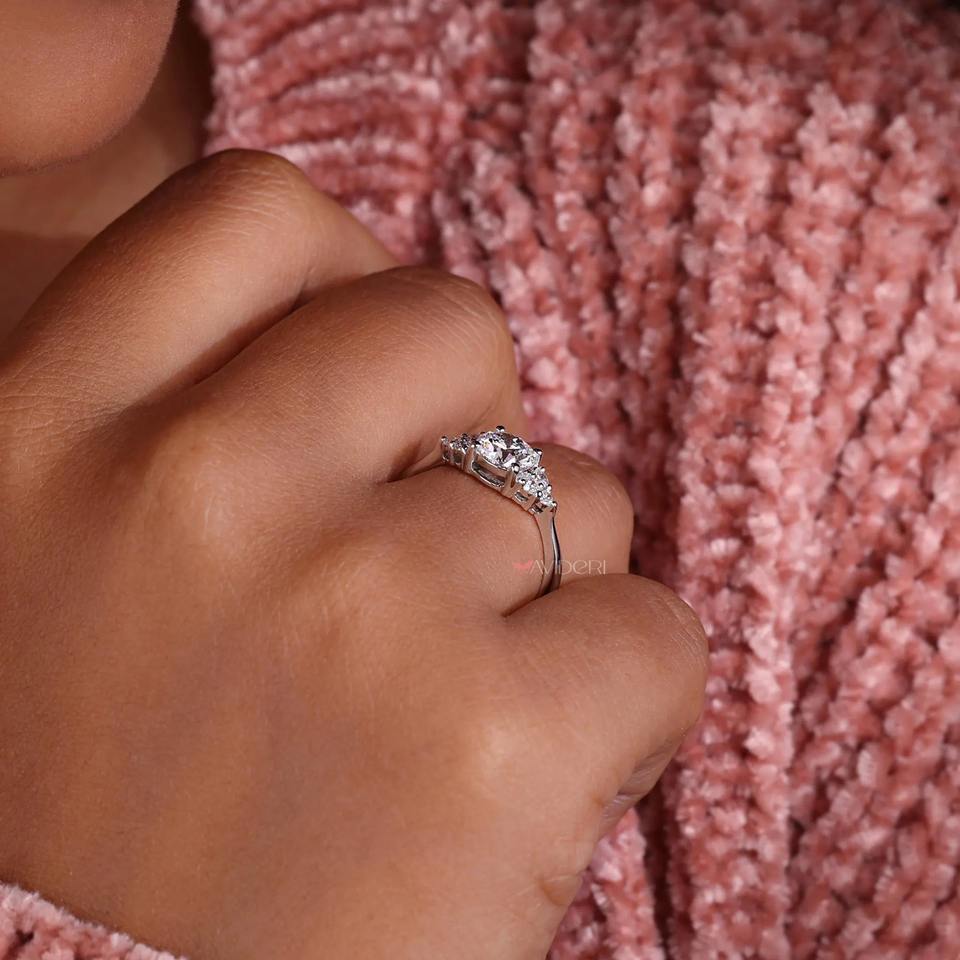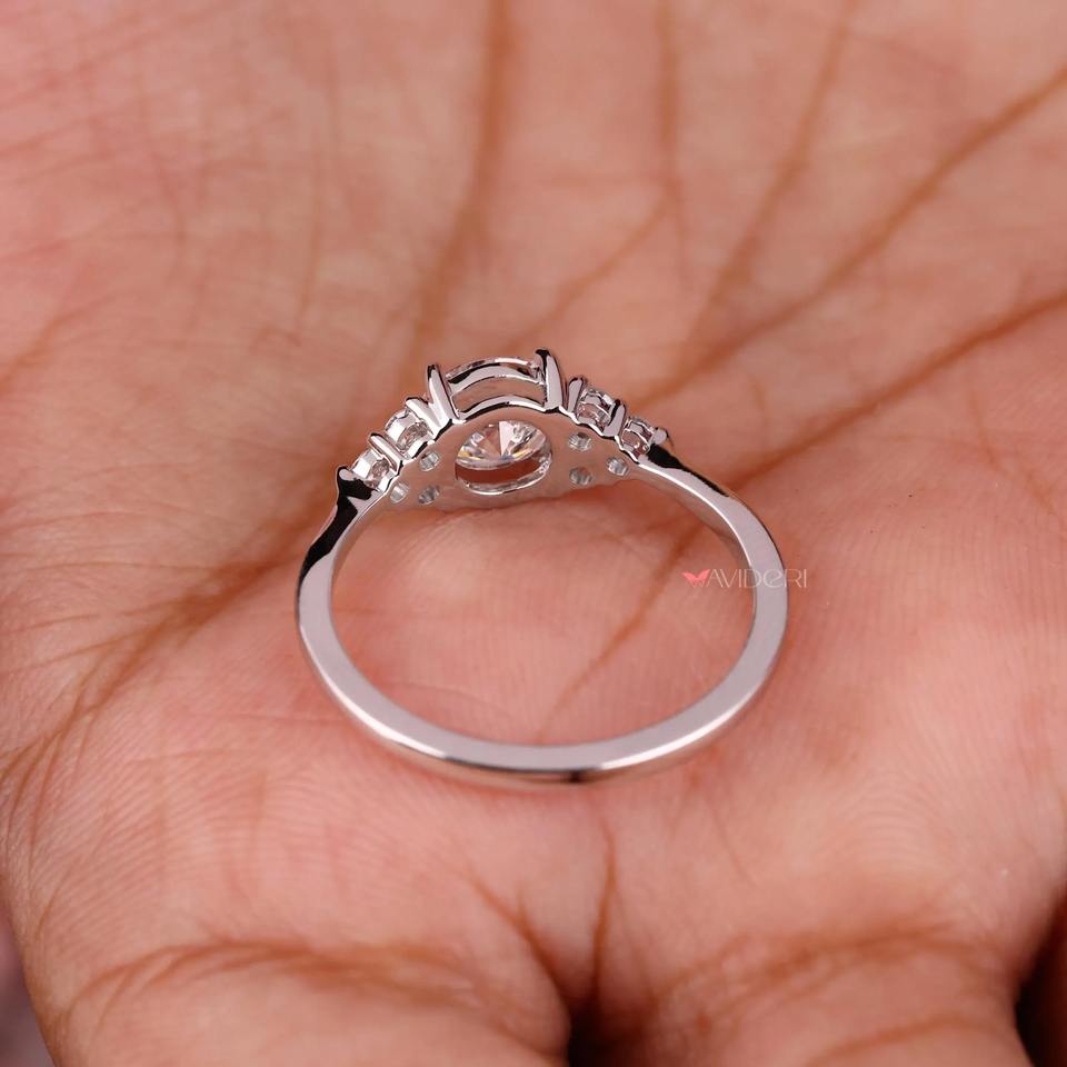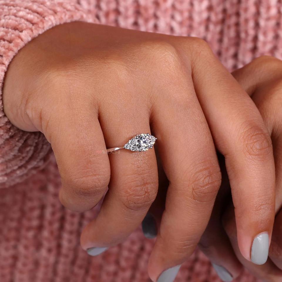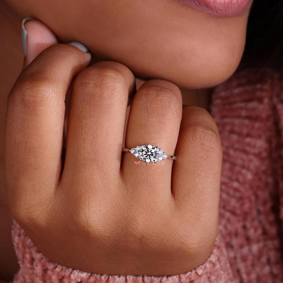 Anillo de compromiso con diamante redondo cultivado en laboratorio de 1 quilate y banda plegada