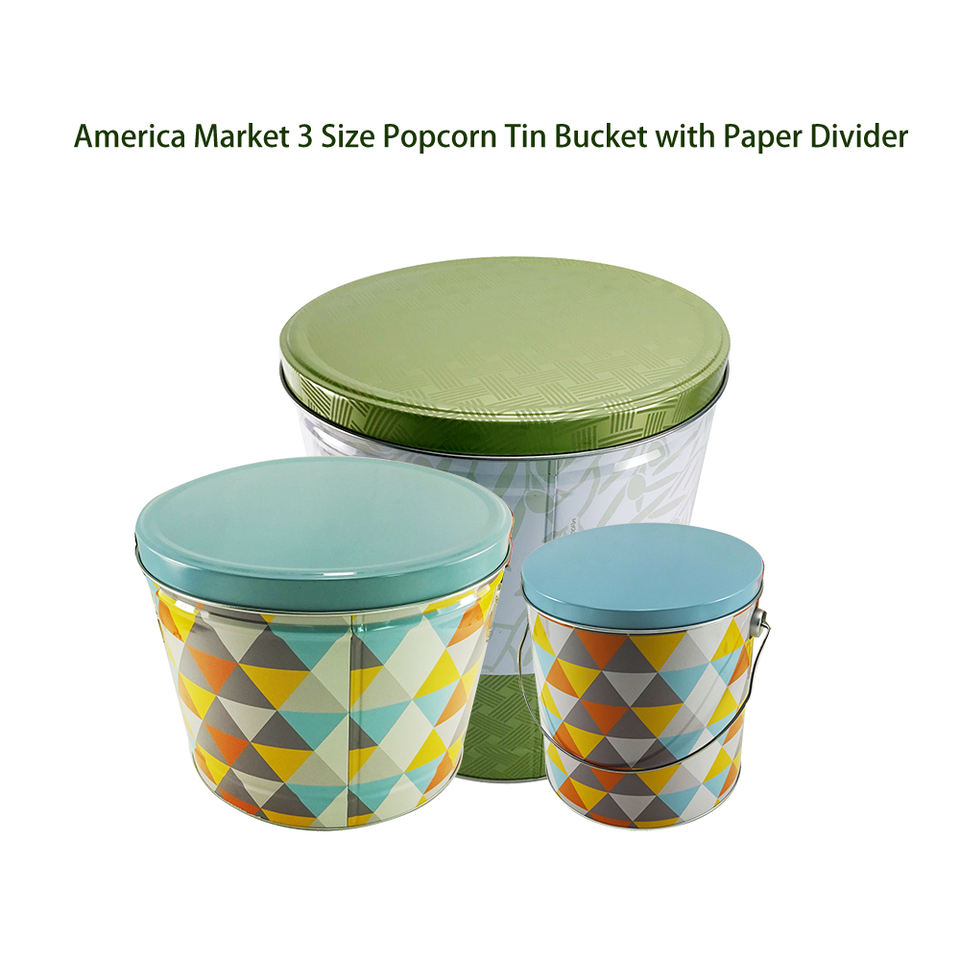1 galón 2 galones y 3,5 galones America Market Cubo de metal Gourmet Palomitas de maíz Lata
