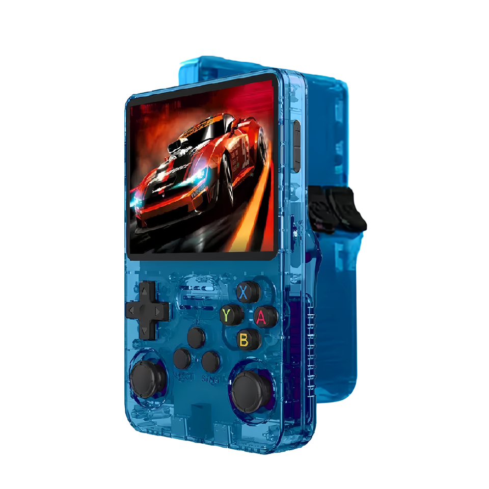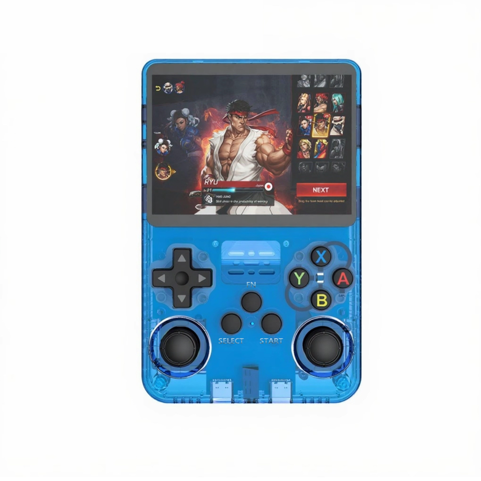 1 consola de juegos portátil Himi R36S PRO azul, almacenamiento expandible para adultos, pantalla IPS HD de 3,5 ", más de 36.000 juegos Linux integrados