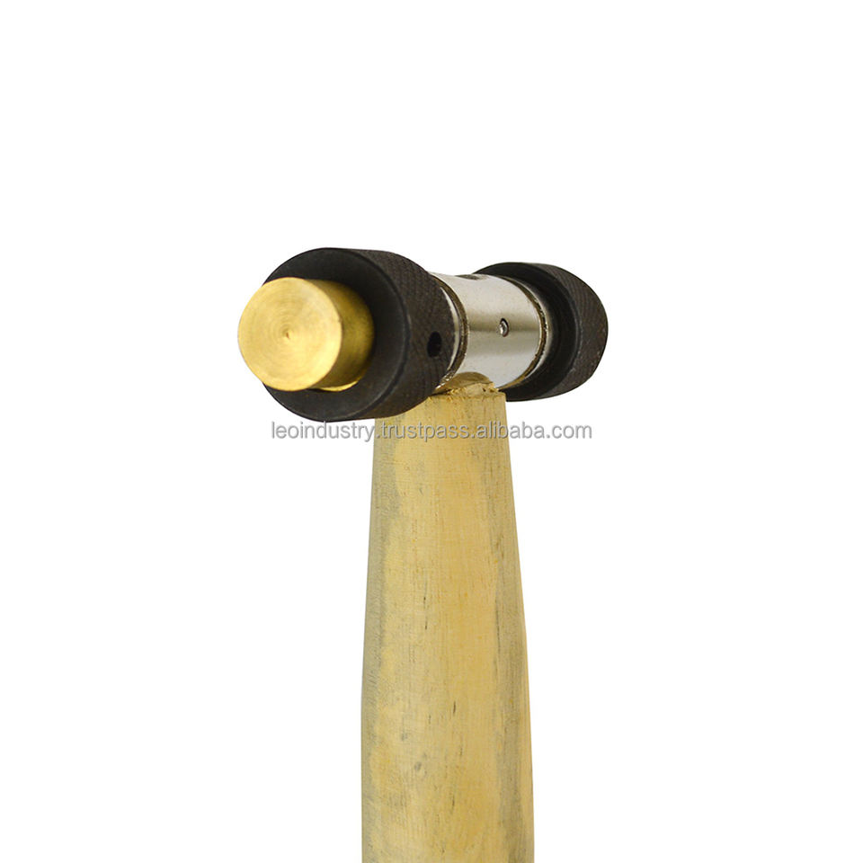 Martillo de mazo de cabeza de latón de 1 libra con mango de madera para joyería, artesanía de cuero metalúrgico