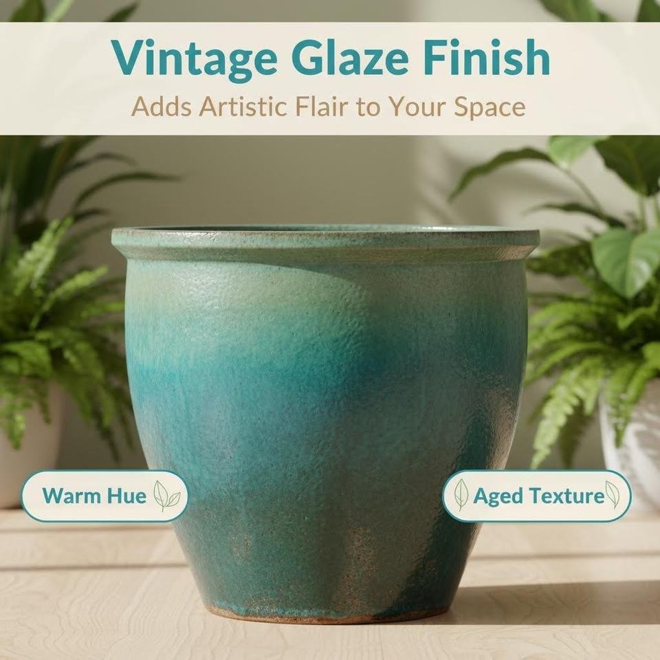 Maceta Moderna de Cerámica de 1 Metro con Orificios de Drenaje, Acabado Esmaltado, Decoración de Alta Calidad para el Hogar