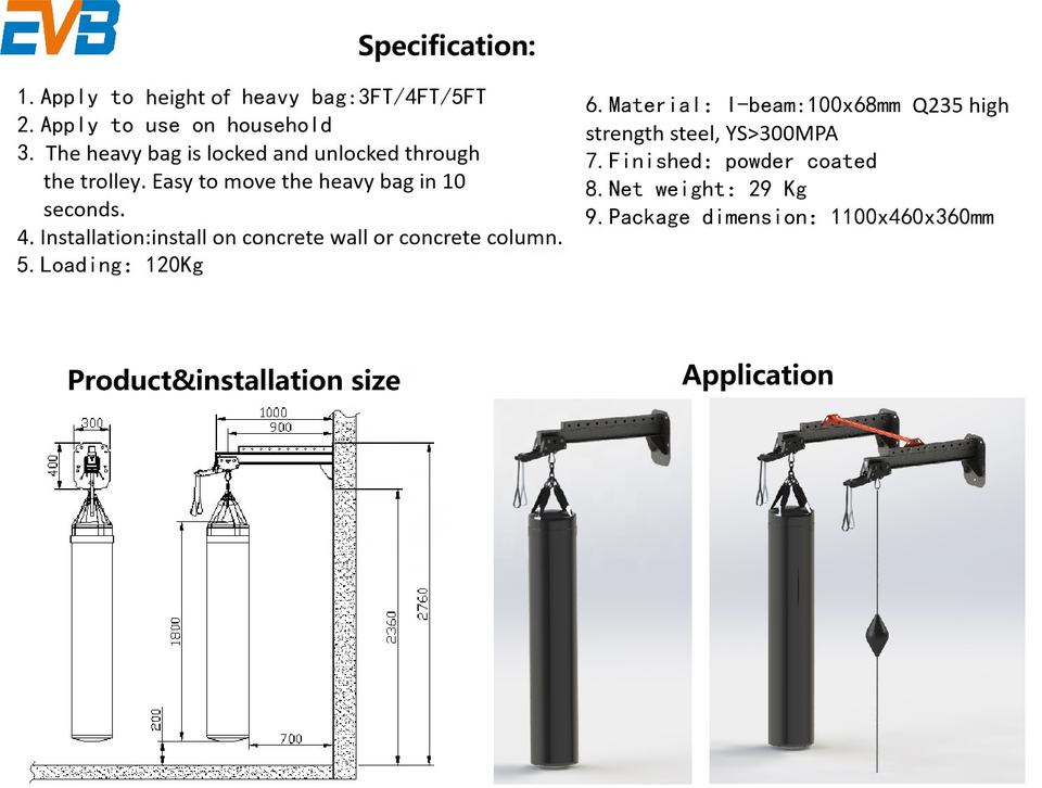 Soporte de pared individual para saco de boxeo de 1 metro con riel deslizante
