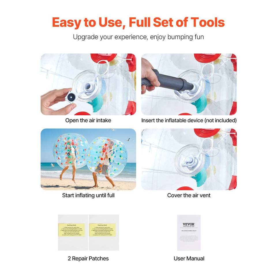 Paquete de 1 Pelota Inflable de Sumo Zorb de 1.5M/5FT, PVC de 0.8mm de Grosor, Burbuja Humana Tipo Hámster para Deportes al Aire Libre
