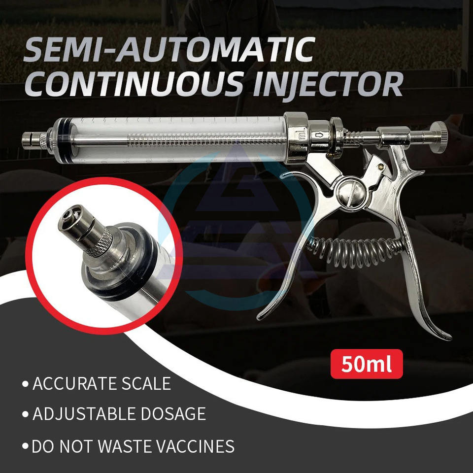 1 Jeringa de Inyección Continua para Animales de 50 ml, Tubo de Plástico, Pistola de Vacunación Automática de Acero Inoxidable para Vacas, Cerdos y Ovejas