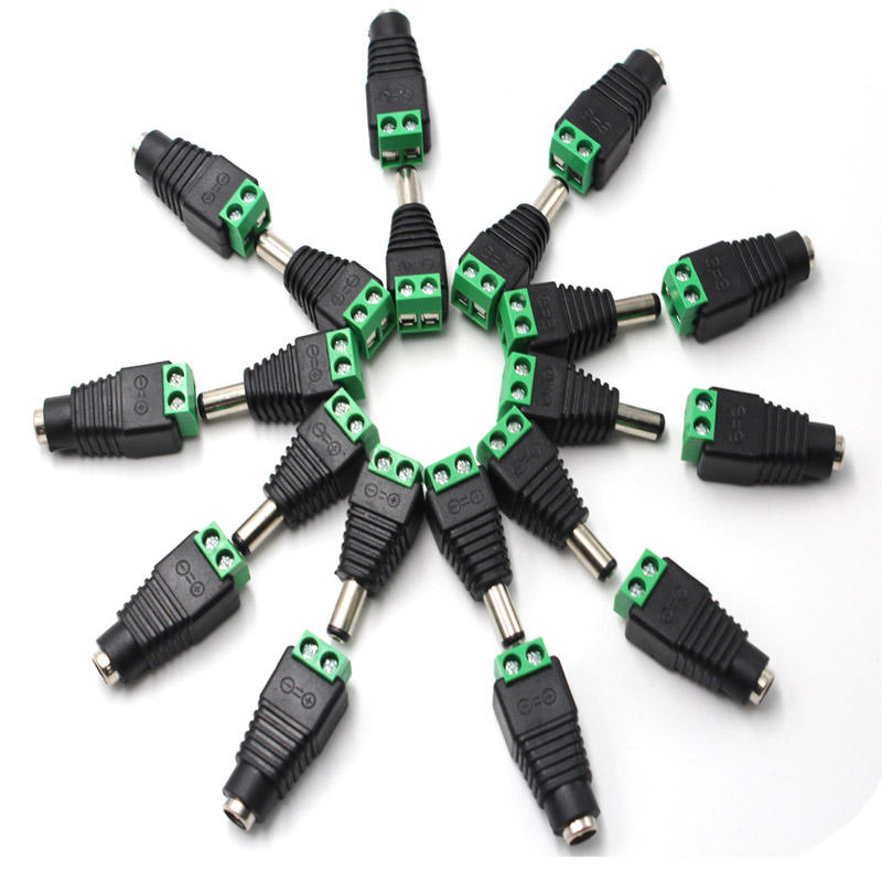 Conector de cable de alimentación eléctrico de 1 pin CC 5.5*2.1/5.5*2.5, columna de línea, macho y hembra de 12V, conector de conversión verde