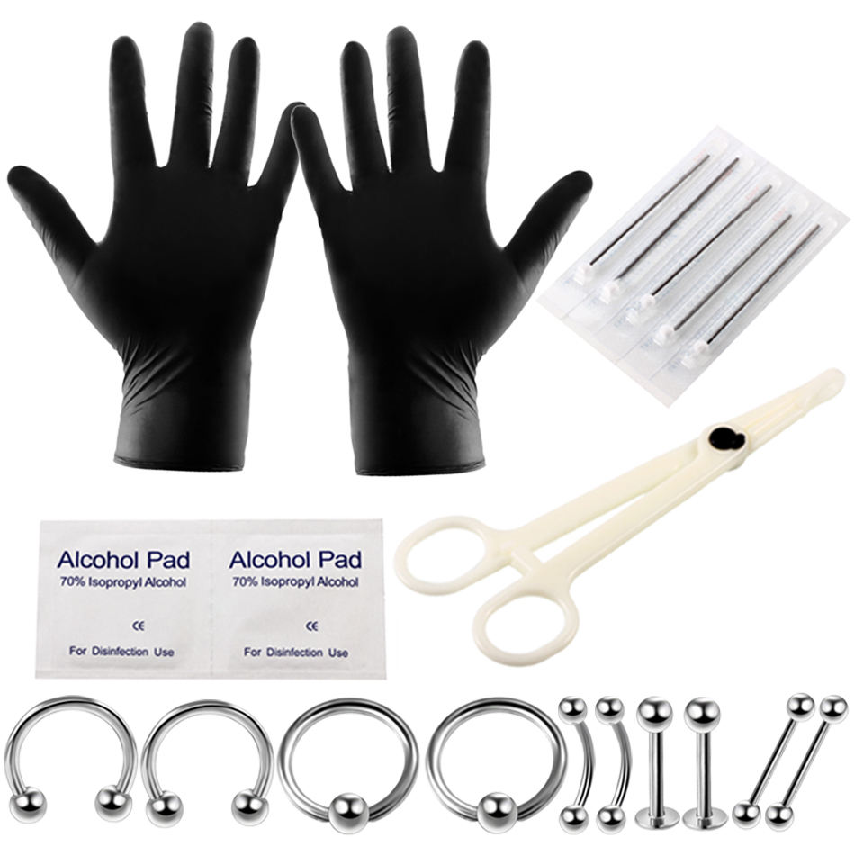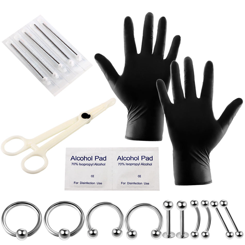 Kit de Perforación Corporal Profesional Desechable, Agujas para Perforación Corporal, Herramientas de Sujeción, Perforación de Oreja, Tragus, Nariz y Ombligo