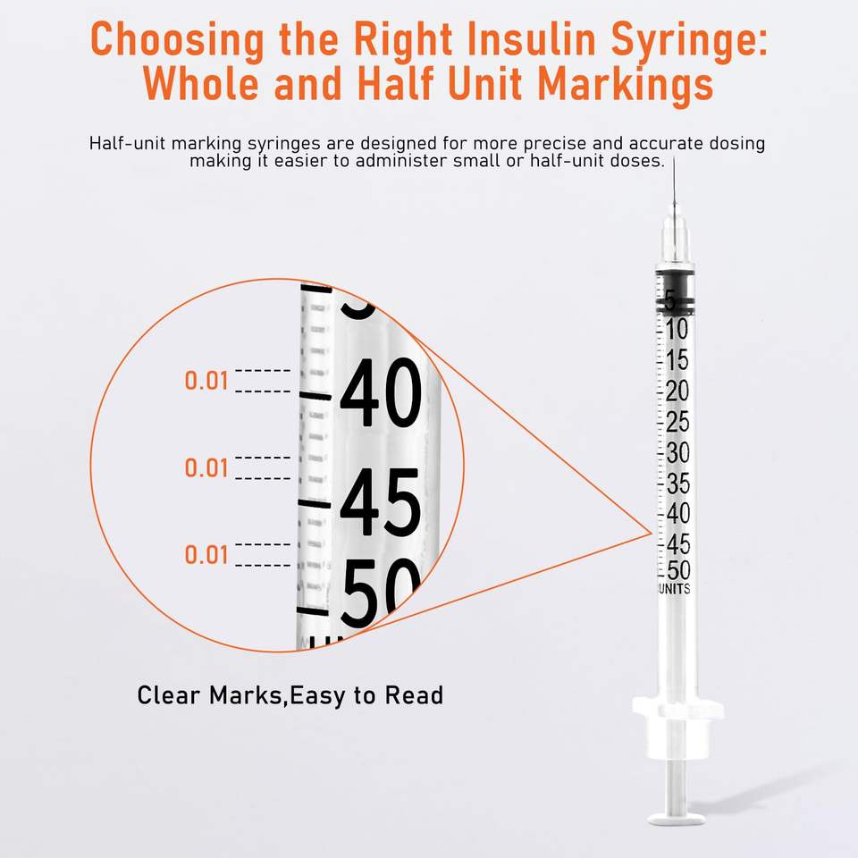 Jeringa de Insulina de 1 mL y 0.5 mL con Fácil Operación, Hecha de Materiales Hipoalergénicos, Apta para Animales.