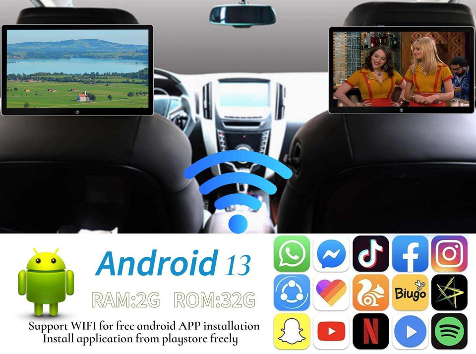Monitor de Reposacabezas Android de 10.1 Pulgadas con Pantalla Táctil IPS 2+32G, Entretenimiento para Asientos Traseros, USB, BT, WIFI Inalámbrico para Automóvil Universal