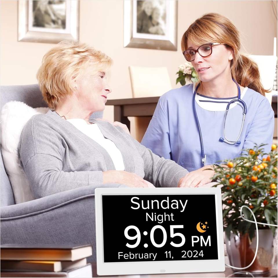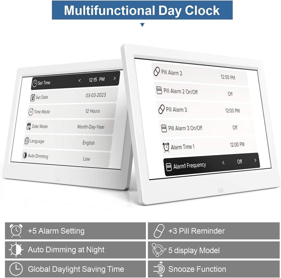 Reloj Despertador Electrónico Digital de 10.1 Pulgadas con Pantalla a Todo Color para Personas Mayores, Diseño Moderno, Reloj de Escritorio con Letra Grande y Voz