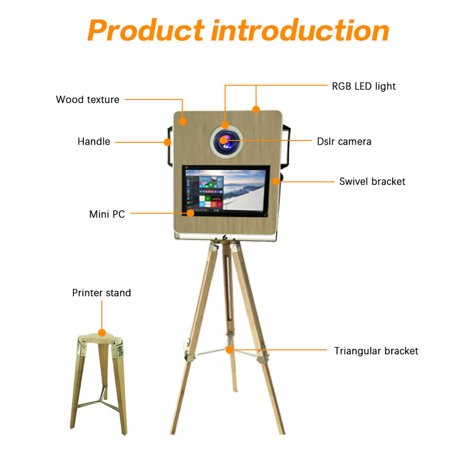 10,2 7th Generation Photo Booth Wood Retro Dslr Photo Booth con estuche de viaje