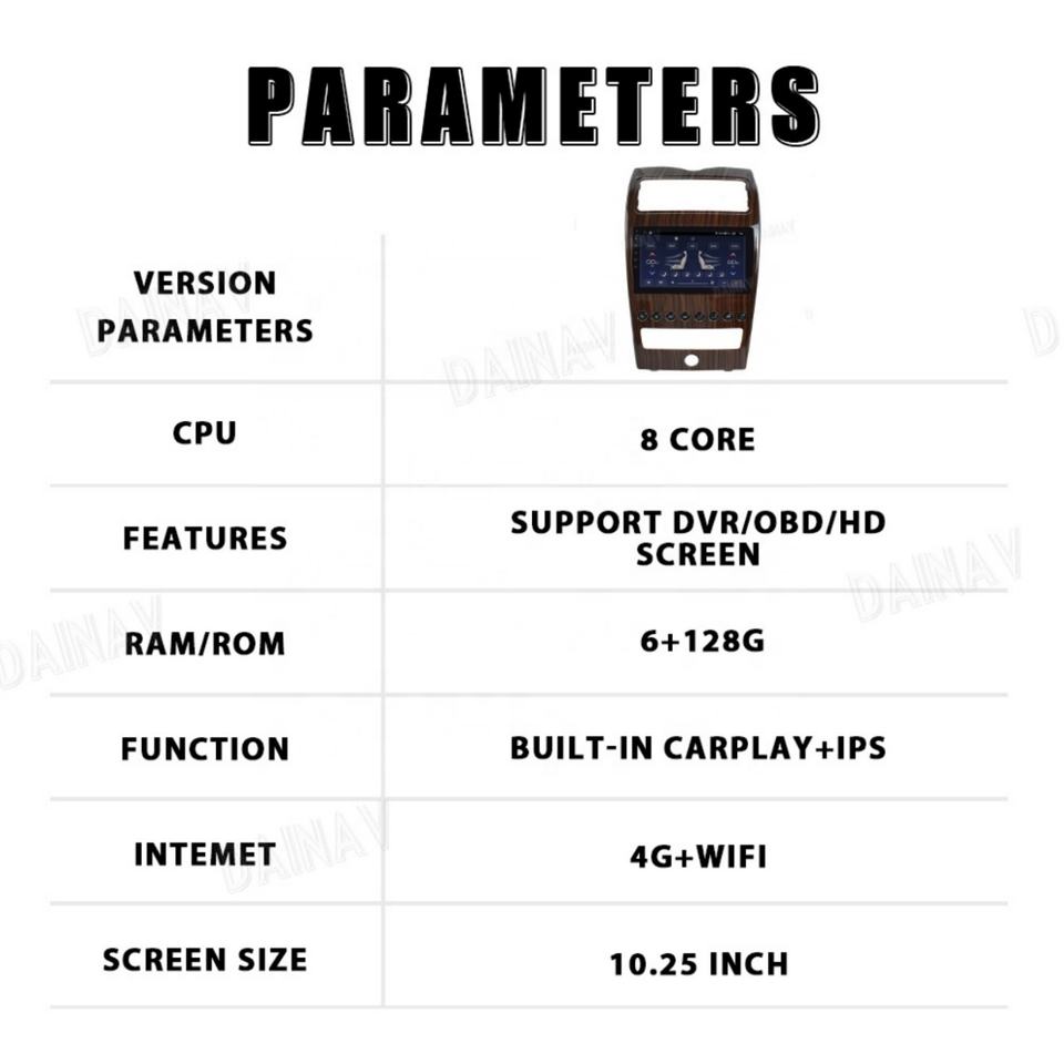 CarPlay, Enlace espejo, Android auto, Compatible con Bluetooth, Construir-En DSP, MP3/MP4, Pantalla táctil, Visor de imágenes, Sintonizador Radio, Control remoto, Amplificador, 3D mapa, Cámara de copia de seguridad, Guía de voz, Control del Volante, Pantalla dividida, Carretera de planificación, Distancia de advertencia, Invertir la ayuda, En directo/aparcamiento, En directo/Live el tráfico, MultiMedia apoya, Velocidad de alerta, Brújula digital, Construir-en el micrófono, La voz de interacciónFunción