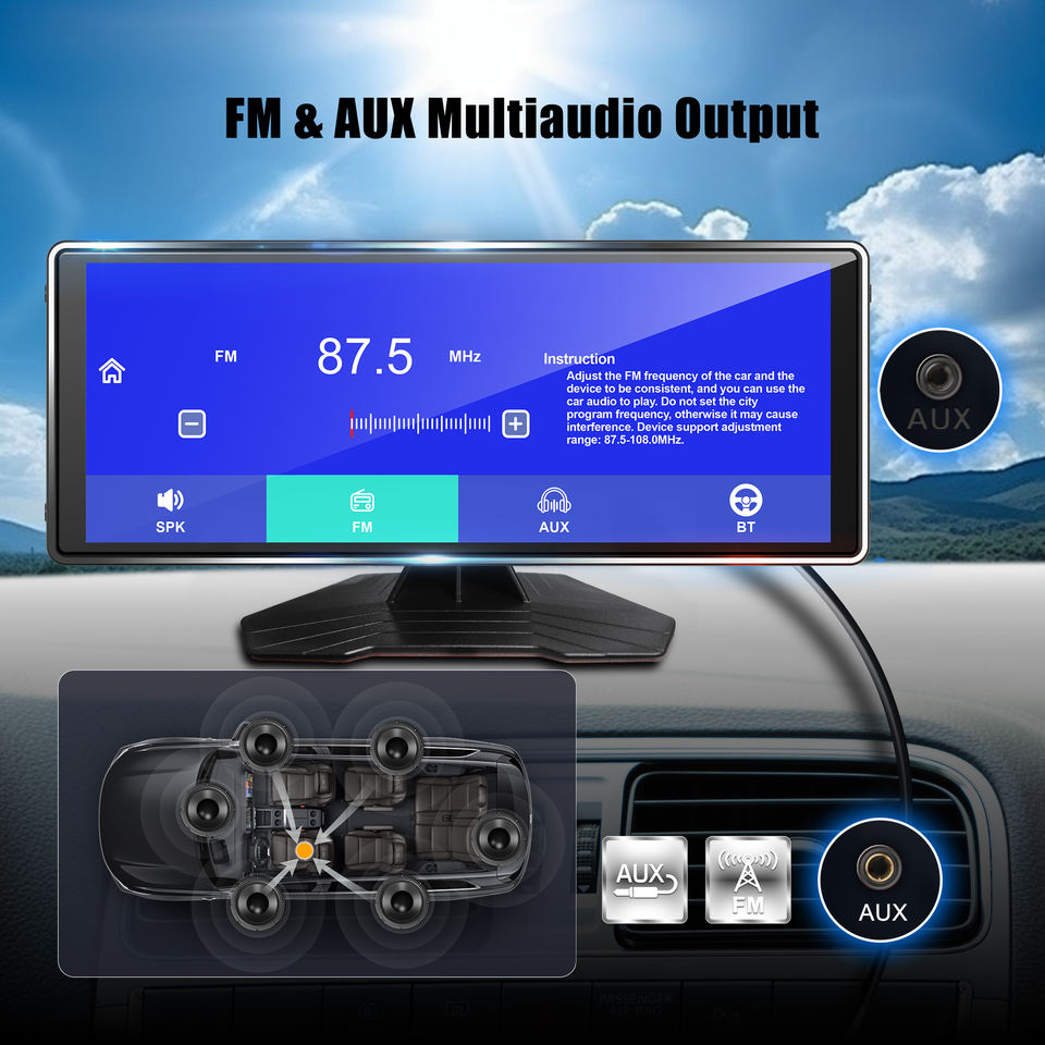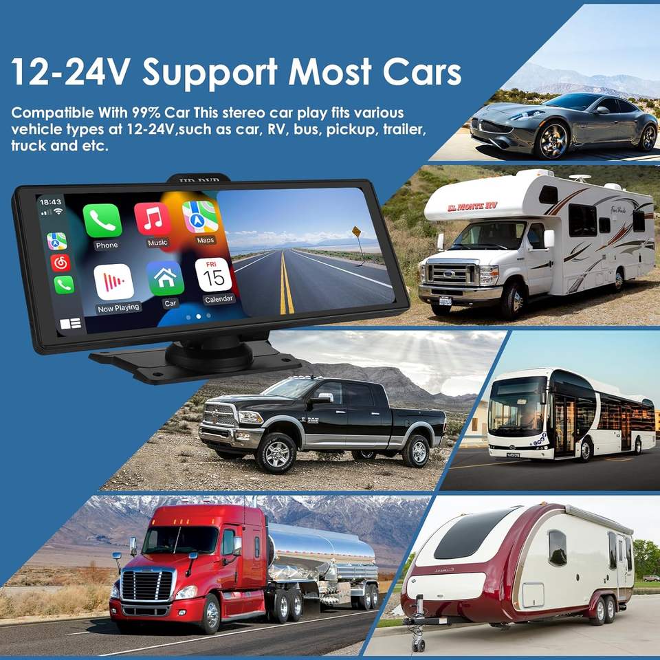 Pantalla Carplay de 10.26 Pulgadas, Radio para Auto, Reproductor Multimedia de Video 4k con Carplay y Dashcam