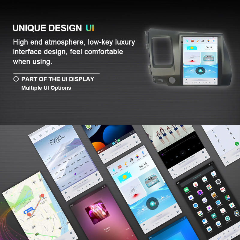 Estéreo Multimedia para Automóvil Android de 10.4 Pulgadas para Honda Civic 2006-2011, Conducción Izquierda, Pantalla Táctil, Radio con GPS, BT, CarPlay Inalámbrico, Audio