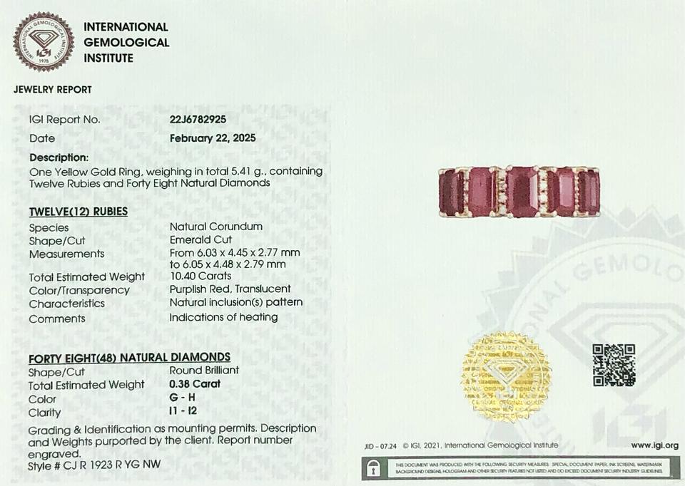 10,4 CTW Real Birmania Ruby declaración boda banda 14K oro amarillo Pave Set diamante apilamiento anillo para novia con envío el mismo día