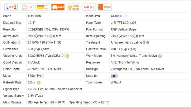 Ángulo de Visión:80/80/65/65 (Típ.))(CR10