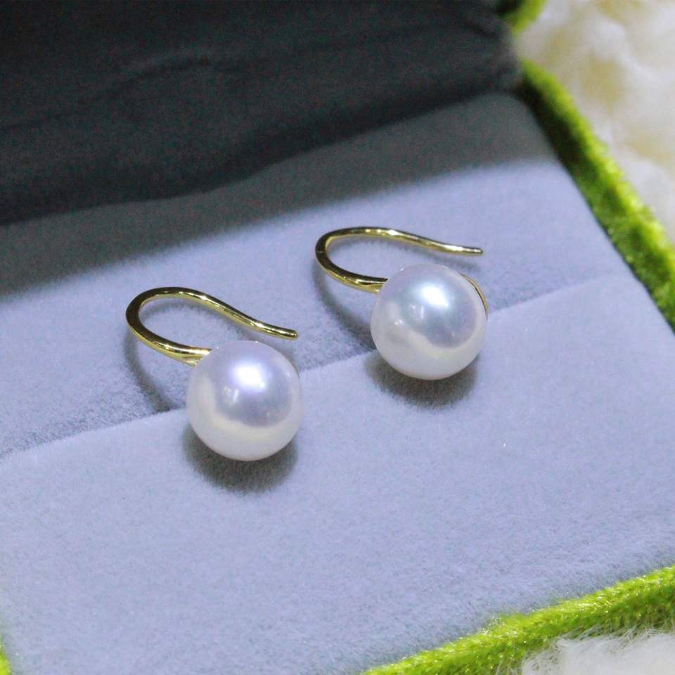 Pendientes de Perlas Naturales de Agua Dulce de 10-9 mm, Rojo Chino con Fuerte Brillo, Aguja de Oro Grueso de 18K, Alta Belleza y Riqueza