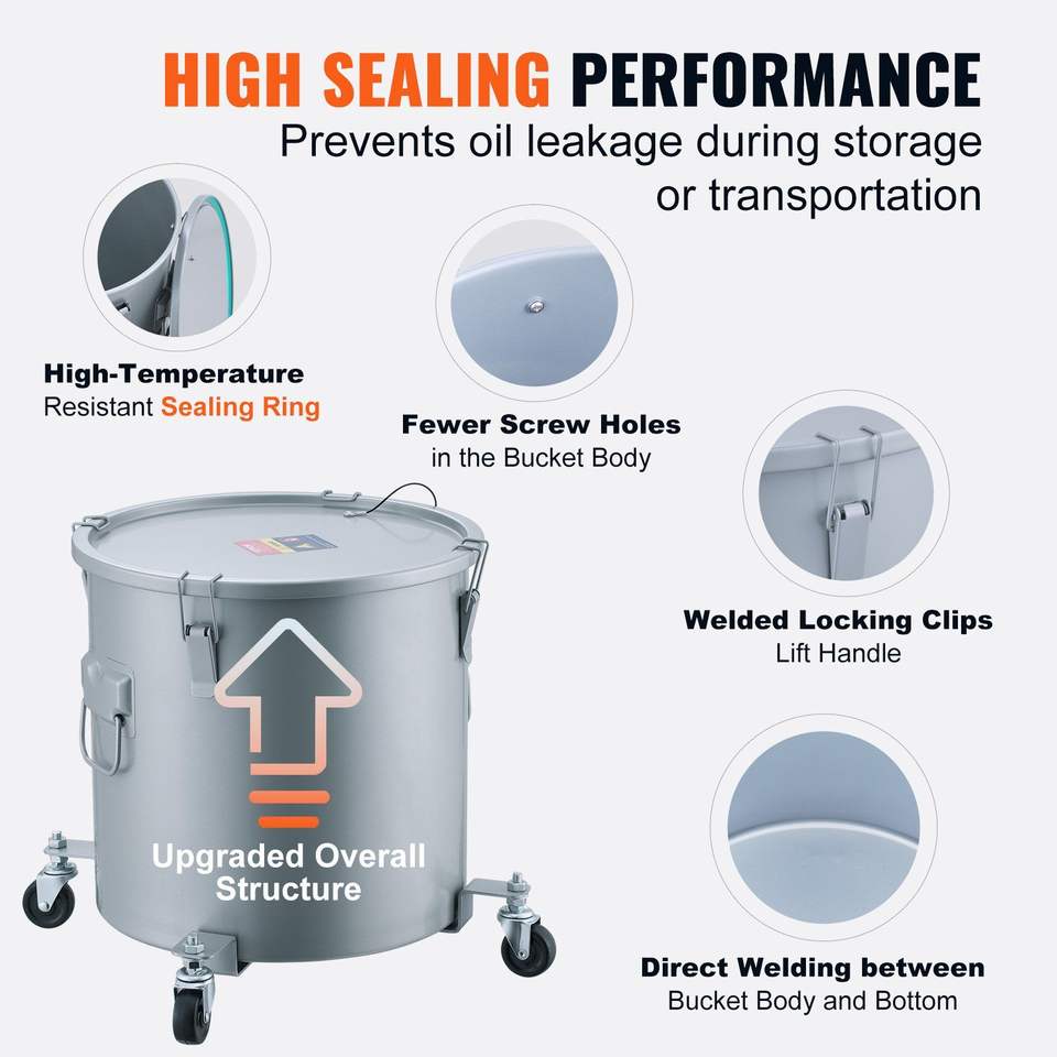 Cubo de Grasa para Freidora de Acero al Carbono Inoxidable de 10 Galones con Base con Ruedas para Transporte y Eliminación de Aceite, Equipo de Cocina Comercial