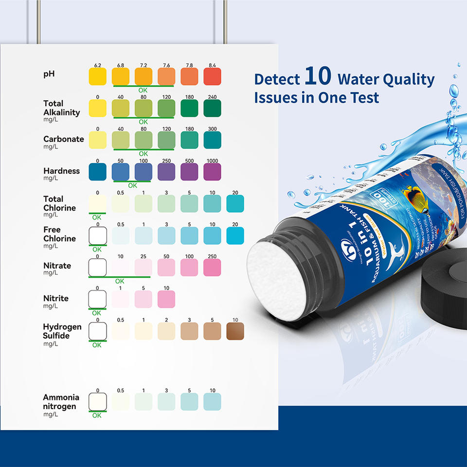 Tiras reactivas 10 en 1 para análisis de agua de acuarios y estanques, 100 tiras