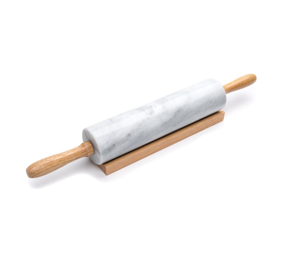 Rodillo de mármol pulido de barril de 10 pulgadas con cuna de madera