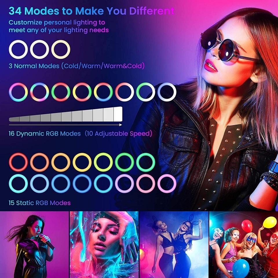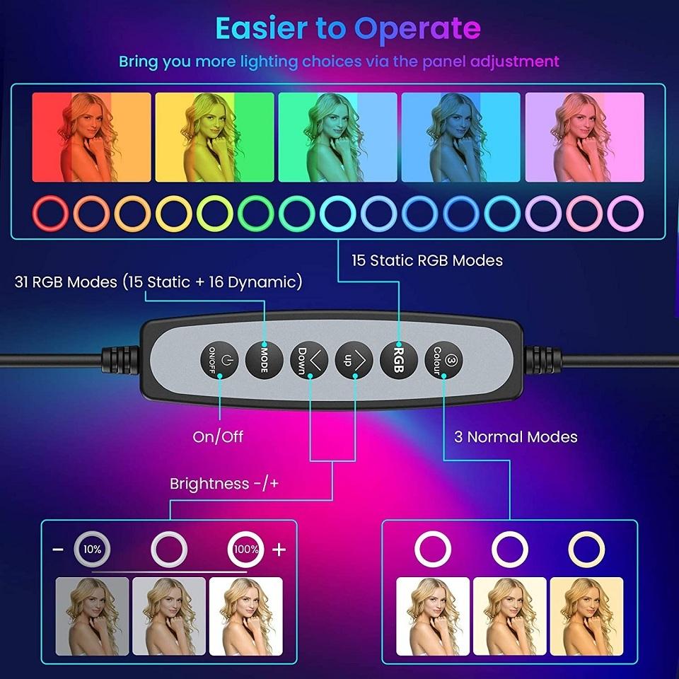 Aro de Luz LED RGB de 10 Pulgadas con Trípode, Luz de Relleno para Fotografía, Soporte para Teléfono, Lámpara Circular para Maquillaje y TikTok