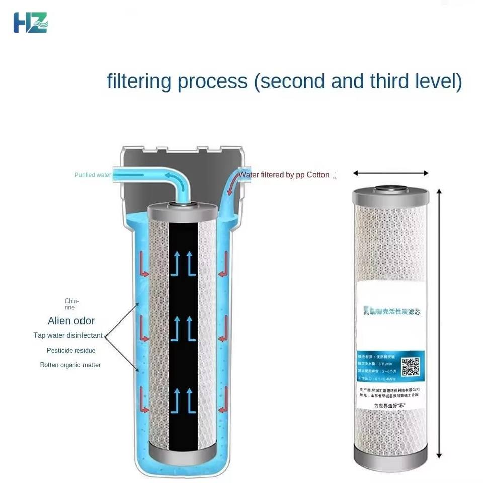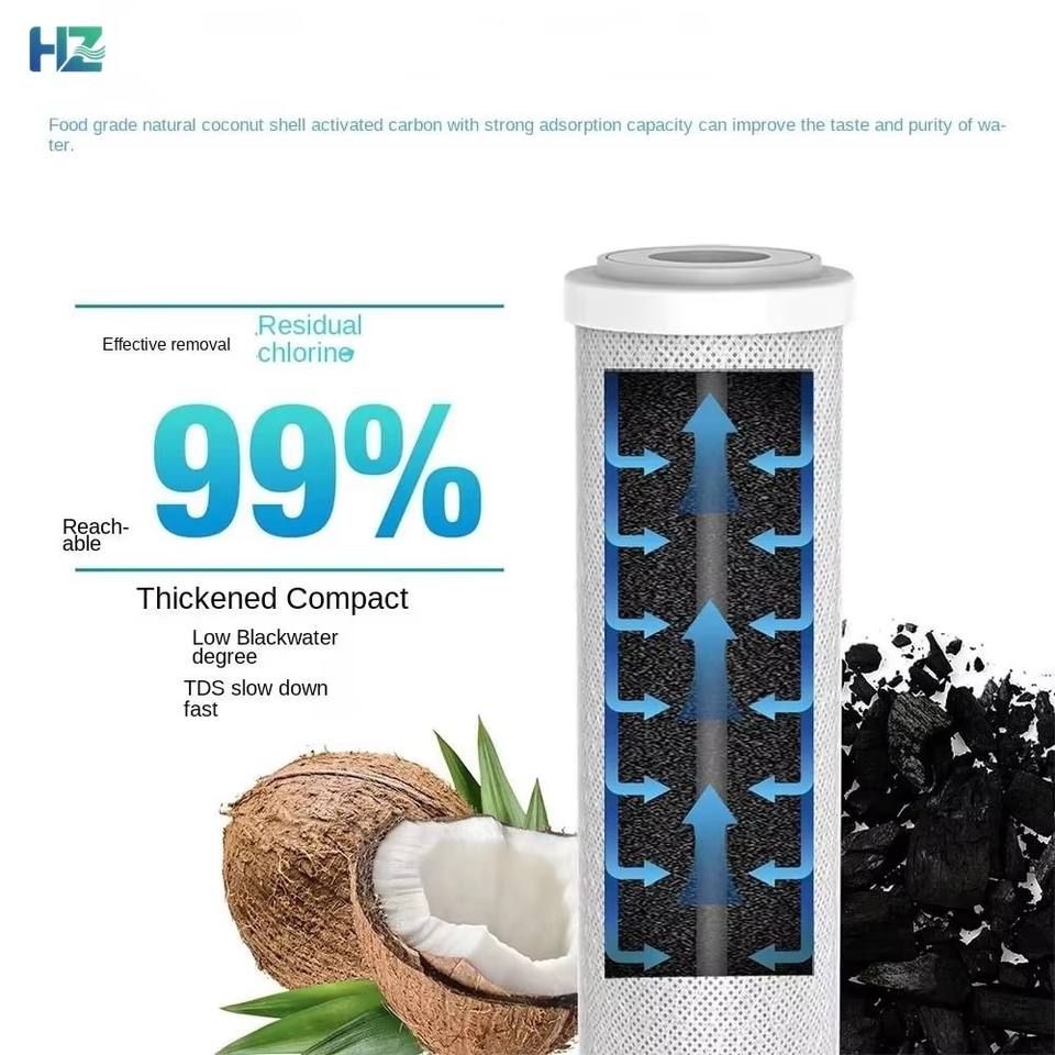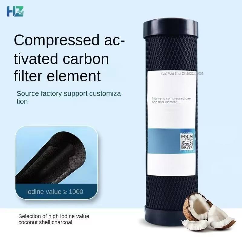 Cartucho de Filtro Comprimido de Carbón Activado de Alto Valor de Yodo CTO de 10 Pulgadas, Cáscara de Coco, Más de 1000 CT