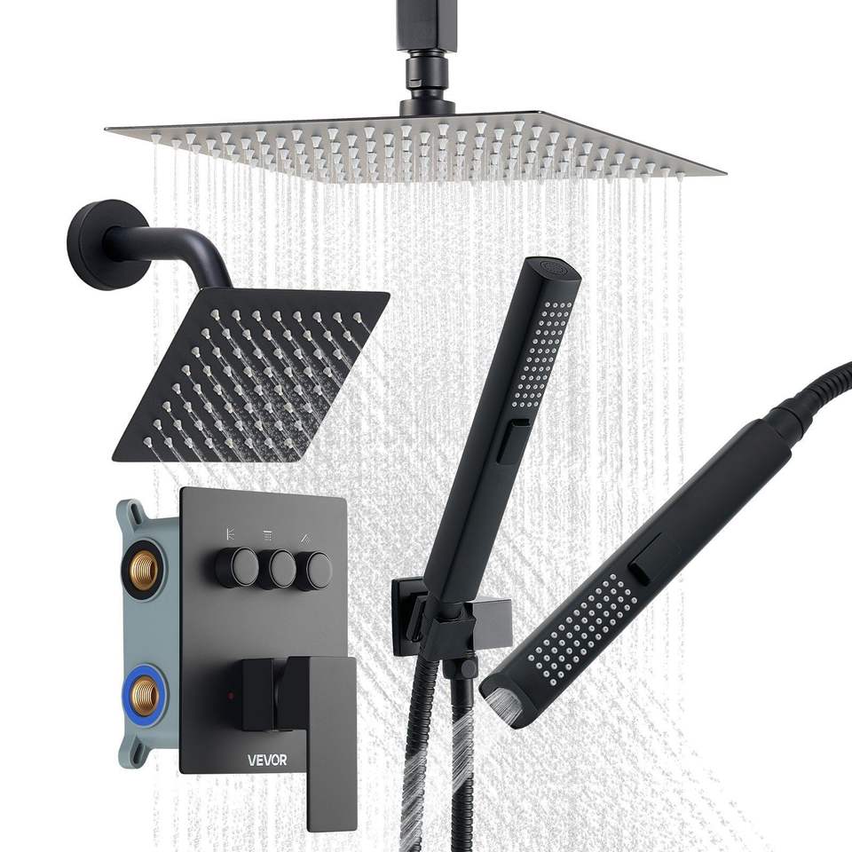 Sistema de ducha de lluvia de montaje en techo de 10 pulgadas Montaje en pared de 6 pulgadas 2-1 Spray de mano Juego de válvulas de latón de doble cabezal de lluvia de 3 funciones"