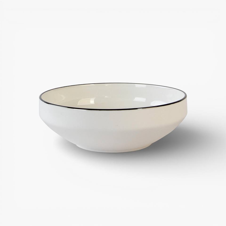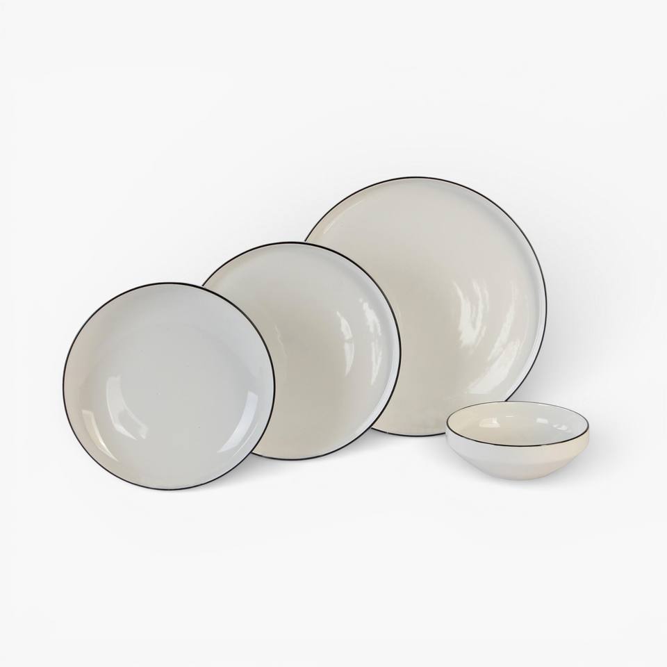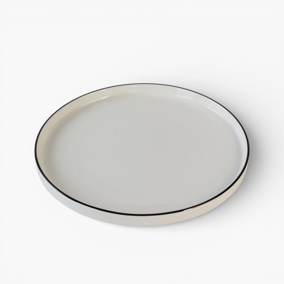 Platos de Cena de 10 Pulgadas, Vajilla de Cerámica, Nueva Porcelana Fina, Plato Redondo Moderno y Contemporáneo, Juego de Platos con Borde Negro Clásico