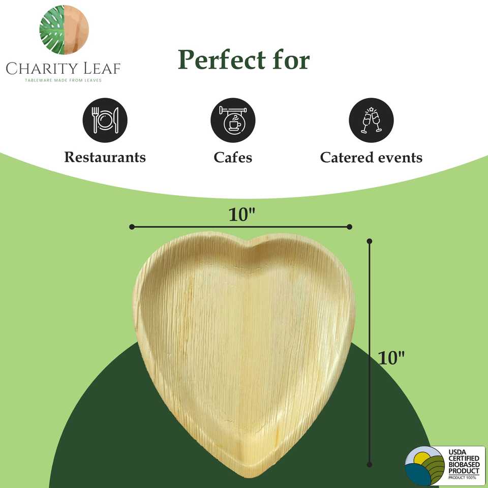 Plato Desechable de Hoja de Palma Natural en Forma de Corazón de 10 Pulgadas