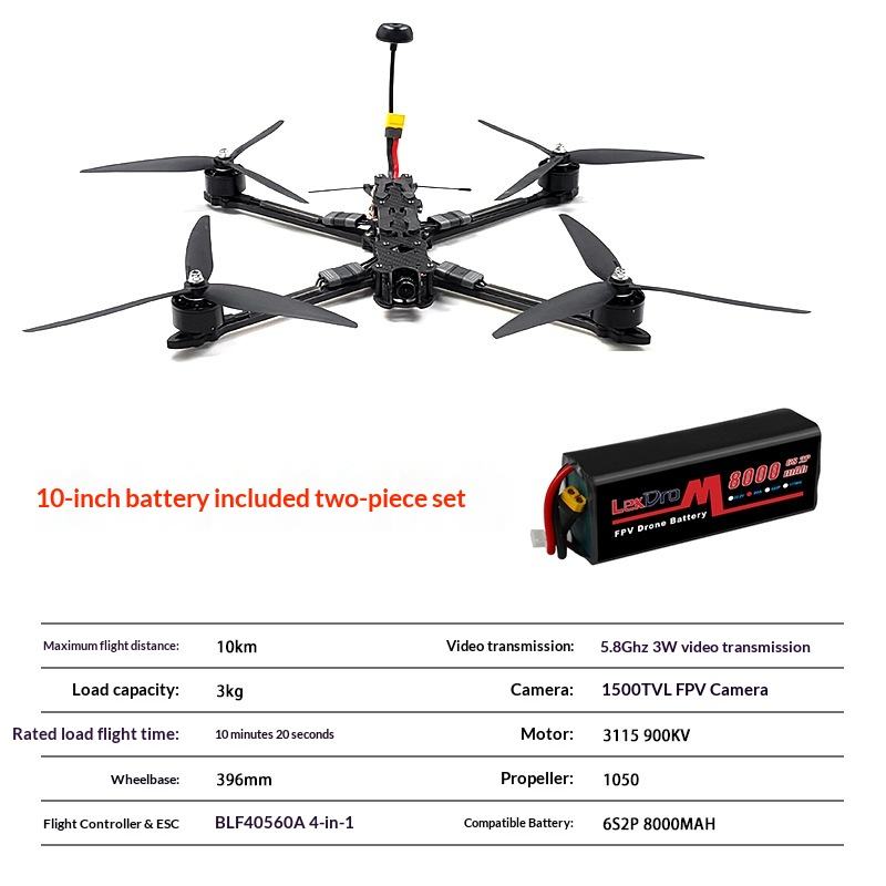Quadcopter de Carreras FPV de 10 Pulgadas, Combo 2 en 1 FPV-1000-2IN1, Batería de 8000mAh 6S 2P, VTX de 5.8G 3W, Carga Útil de 3KG, ELRS 915, Aeronave RTF