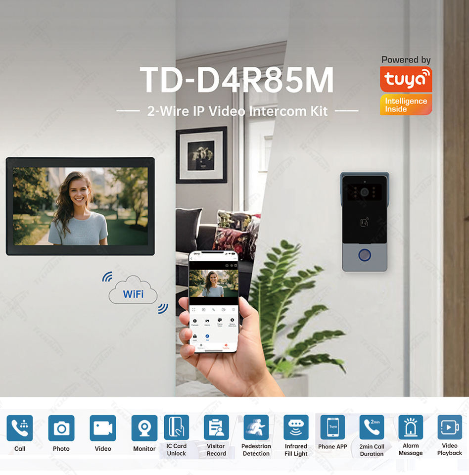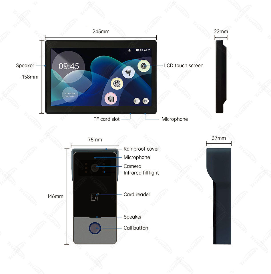 10 pulgadas HD 1080p Rfid Smart Tuya Wifi 2 cables Ip Ring Bell Open Video Intercom Door Phone Cámara y timbre de voz con memoria