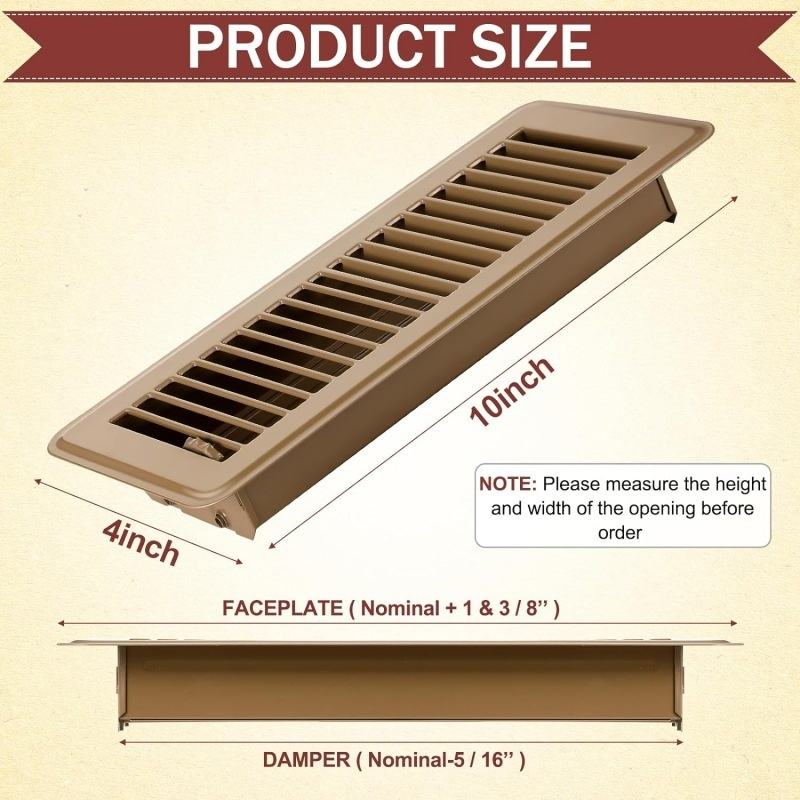 Rejilla de Ventilación de Aire Acondicionado Ajustable de Hierro de Diseño Moderno de 10 Pulgadas con Cables para Sistemas de Calefacción por Suelo Radiante en el Hogar, Piezas CMD