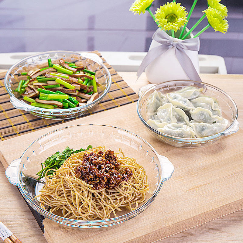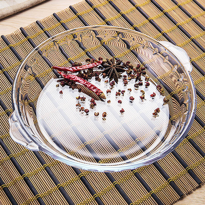 Borosilicato resistente al calor: El uso de vidrio de borosilicato resistente al calor asegura que la vajilla para hornear pueda soportar altas temperaturas, haciéndola adecuada para hornear y otras aplicaciones de alta temperatura.