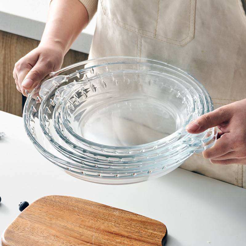 Platos de vidrio redondos de 10 pulgadas, placa transparente resistente al calor de borosilicato, utensilios de cocina para hornear, platos para hornear pasteles de vidrio