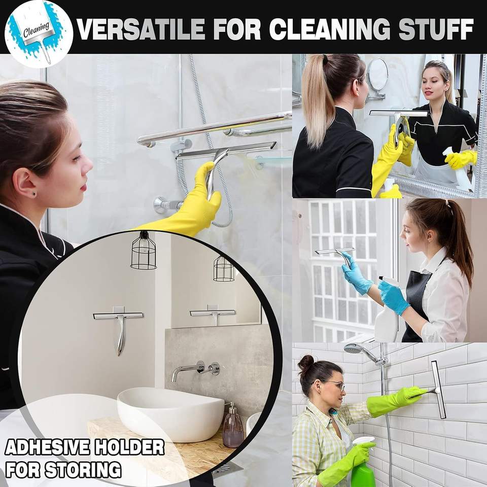 Escobilla de Ducha Multiusos de Acero Inoxidable Plateado de 10 Pulgadas para Puertas de Ducha, Espejos y Azulejos, Producto de Calidad
