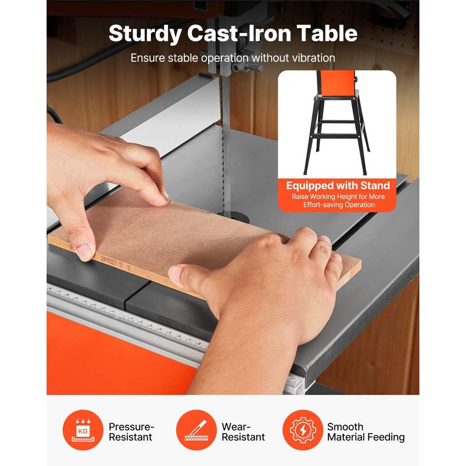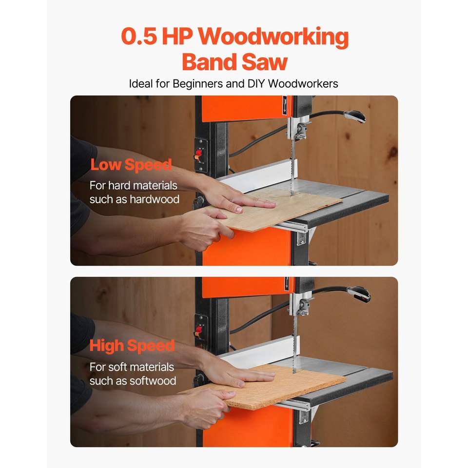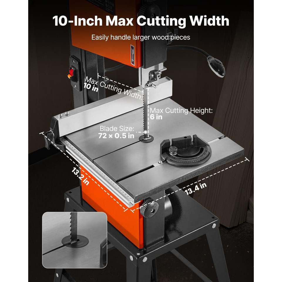 Sierra de cinta de banco de 10 pulgadas y dos velocidades con soporte, 373W 1/2 HP, altura máxima de corte de 6 pulgadas, mesa de hierro fundido de 13.2 x 13.4, máquina de sierra para madera