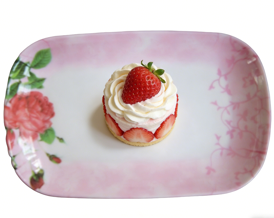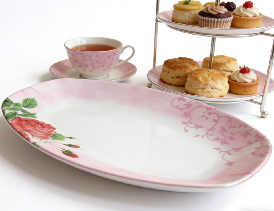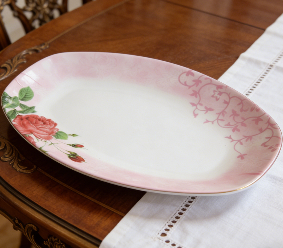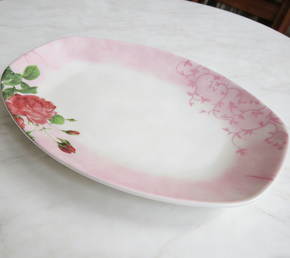 Nombre del Producto:Plato Ovalado de Melamina Rosa con Diseño Floral de Rosas para Servir Cena