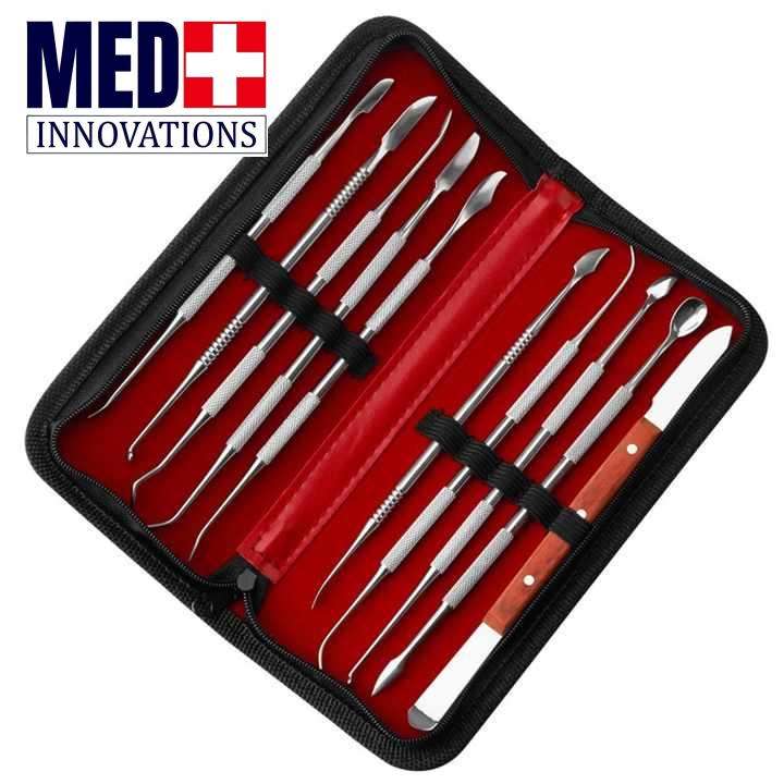 Juego de 10 instrumentos quirúrgicos de acero inoxidable, herramientas manuales de depilación dental con estuche de tallado para depilación
