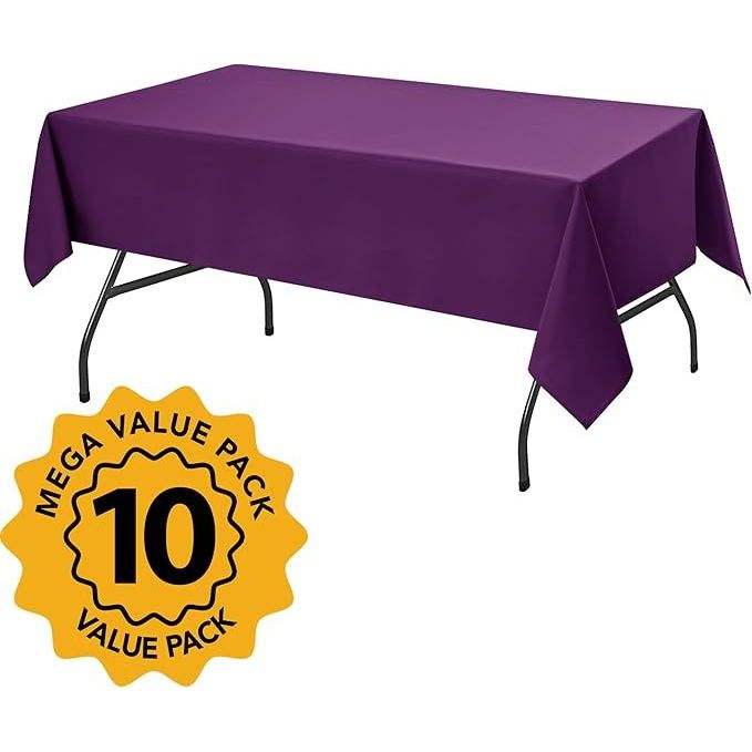Paquete de 10 Manteles Rectangulares Morados de 60 x 84 Pulgadas, Tela de Poliéster Resistente a las Manchas para Mesas de 4 Pies, Lavables
