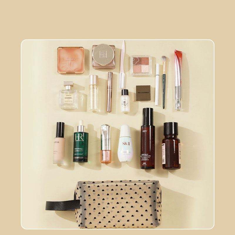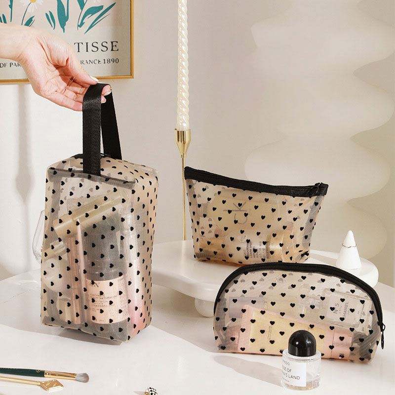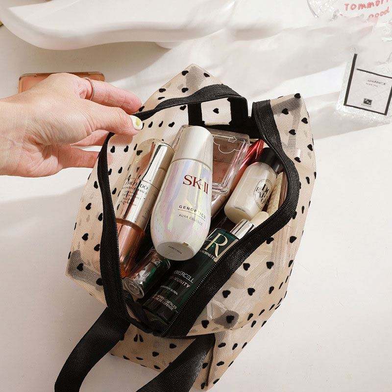 10 Bolsas de Maquillaje Pequeñas de Nailon con Forma de Corazón y Logotipo Personalizado, Bolsa de Almacenamiento de Artículos de Aseo con Cierre, Bolsa de Cosméticos de Malla