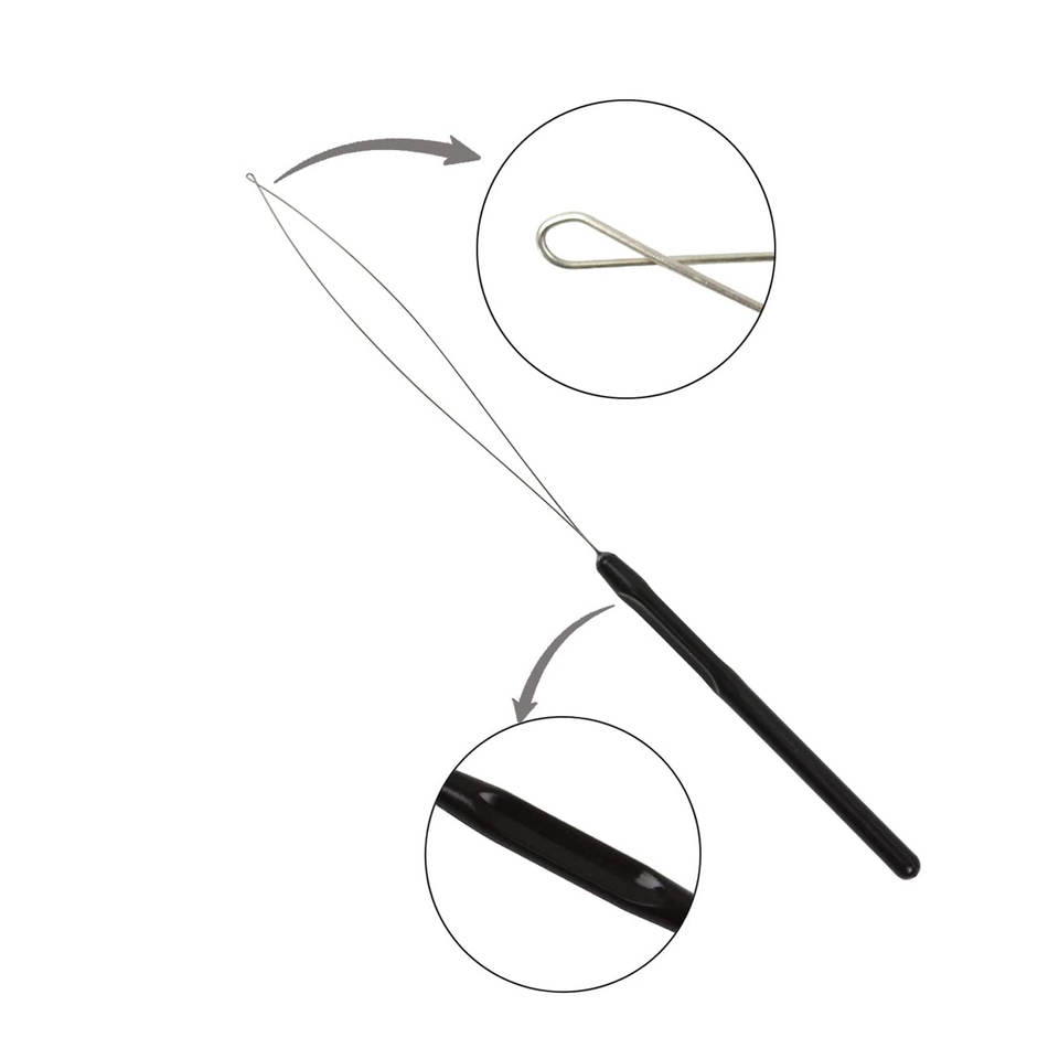 Herramienta de extensión de cabello JACKBILLY, enhebrador de aguja de bucle de acero inoxidable con dispositivo de cuentas de gancho para extensiones de cabello, Color negro