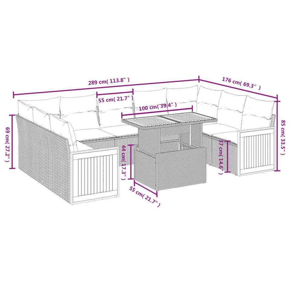 Juego de sofás de patio de ratán sintético negro de 10 piezas con cojines, elegantes muebles de exterior