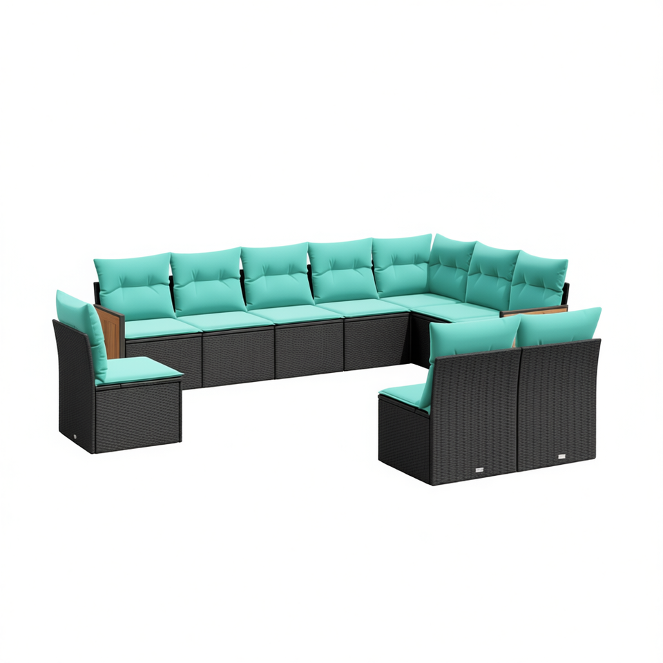 Juego de sofás de patio de ratán sintético negro, 10 piezas con cojines, muebles de exterior contemporáneos, diseño moderno