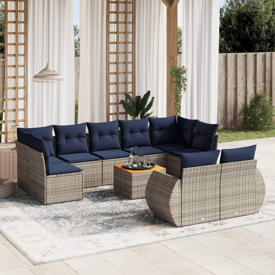 Juego de sofás de jardín de ratán sintético gris de 10 piezas con cojines, colección de muebles de patio