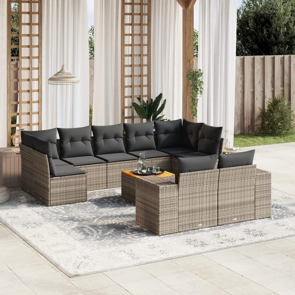 Juego de sofás de jardín de ratán sintético gris modular de 10 piezas